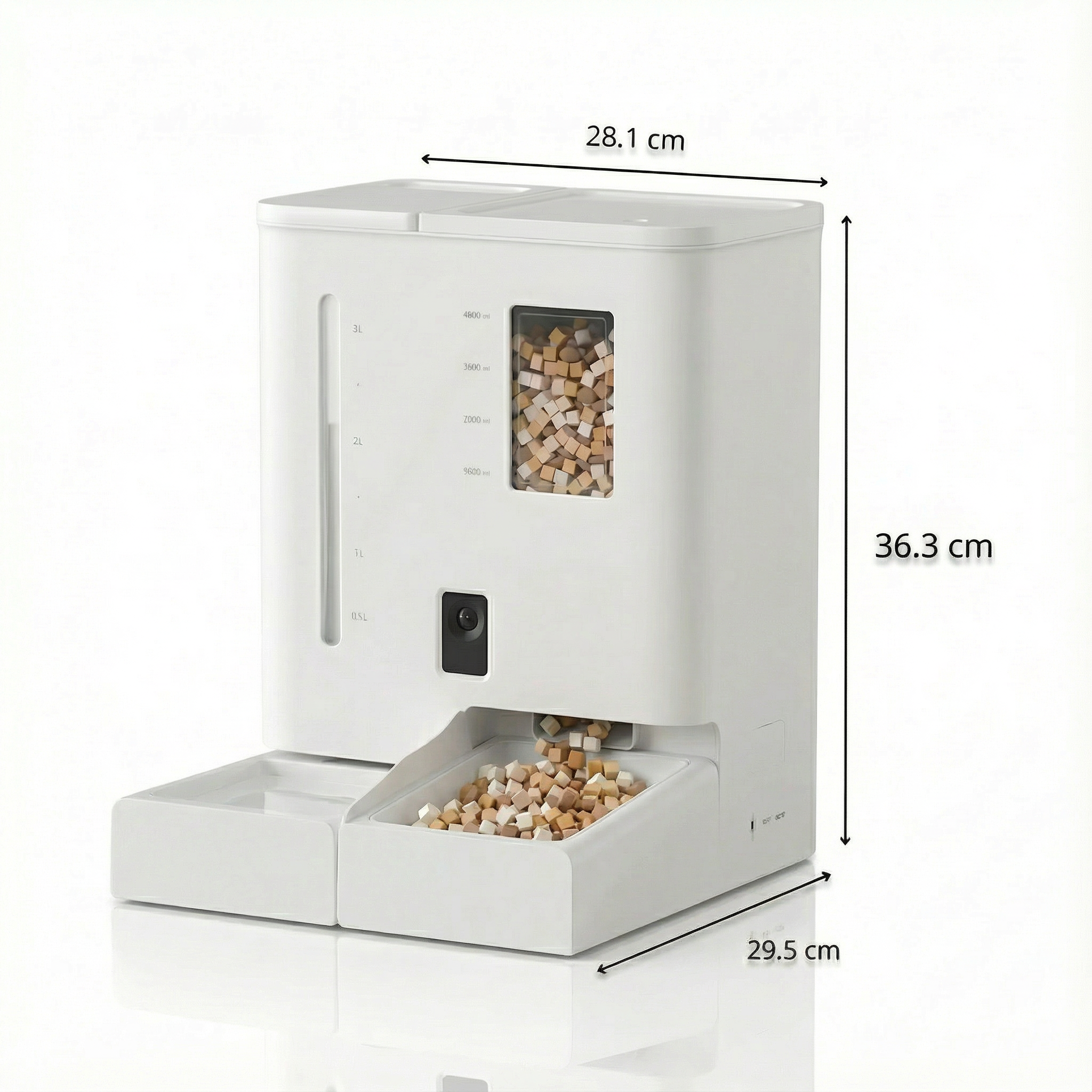 La PetMaison Duo est un distributeur automatique intelligent 2-en-1 qui combine, dans un seul appareil, la distribution de croquettes et l’approvisionnement en eau fraîche. Une solution élégante et autonome pour prendre soin de votre animal, même à distance.
