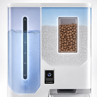 A PetMaison Duo é um sistema automático inteligente 2-em-1 que combina, num único aparelho, um dispensador de ração e um reservatório de água filtrada. Foi concebida para garantir alimentação e hidratação regulares, mesmo quando não está em casa.