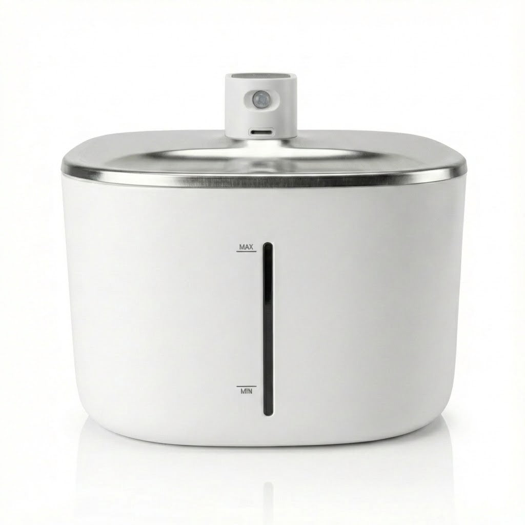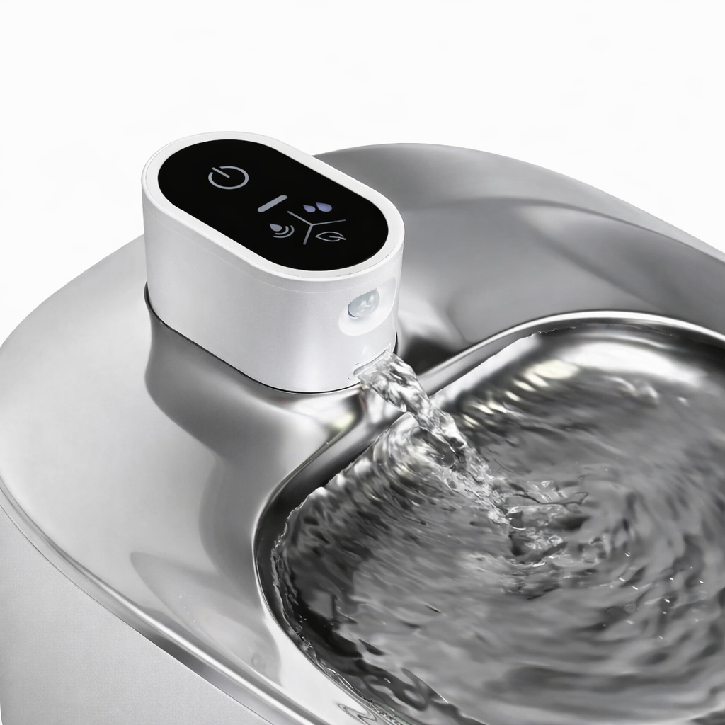 A PetMaison Fountain mantém a água em movimento, promovendo bem-estar e frescura — com uma presença discreta e elegante em qualquer espaço.